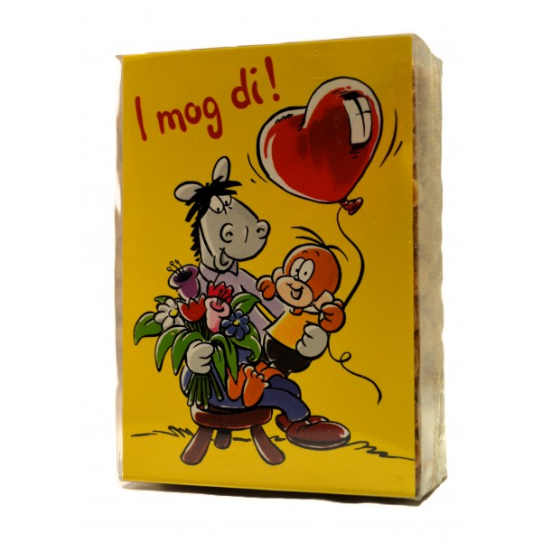 Die Bosch Confiserie Wibele (200g) sind fein gebackene, leicht-knusprige Gebäckstücke für jeden Moment. Perfekt zu Kaffee, tee oder als kleiner Snack zwischendurch. Die Packung aus der Äffle & Pferdle-Serie mit dem Spruch "I mog di!" eignet sich zudem als kleine Aufmerksamkeit. Zutaten: Zucker, Weizenmehl, Hühnereiweiß, Aorma.Dieses Produkt kann Spuren von Schalenfrüchten, Milch und Erdnüssen enthalten. Druchschnittliche Nährwerte pro 100g.Brennwert: 1645kJ/ 387 kcal, Fett 0,2g, davon gesättigte Fettsäuren 0,1g, Kohlenhydrate 88,7g, davon Zucker 49,11g, Eiweiß 7,6g, Salz 0,020g. Hersteller: Confiserie Bosch GmbH - Plochinger Str. 1 - 73006 Uhingen Versandkostenpauschale bis € 125,00 Warenwert € 5,90 - danach frei Haus.